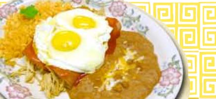 #62. Huevos TexanosTwo enchiladas with your choice of ground beef, shredded beef or chicken, or cheese, served with two over-easy eggs on top. $12.50